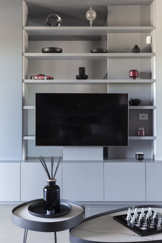 À San Benedetto del Tronto, dans le prestigieux complexe résidentiel qui donne sur la Riviera delle Palme, TM Italia a réalisé l’aménagement clé en main de trois appartements, chacun conçu pour exploiter au mieux l’espace disponible et pour répondre aux exigences des clients, chacun ayant un style de vie différent qui se reflète également dans le choix des meubles et des cuisines. Dans les zones de vie, différentes solutions ont été adoptées en fonction des espaces et des besoins des clients. Dans la zone de couchage, il s’agissait d’exploiter au maximum l’espace au sol et de créer le plus d’espace possible pour le rangement des vêtements et des objets. Des armoires pleine hauteur ont été créées pour utiliser chaque centimètre disponible, des tables de chevet sur mesure pour chaque chambre, des totems TV, ainsi que des têtes de lit équipées d’un éclairage LED, chacune avec un design unique et personnalisé.